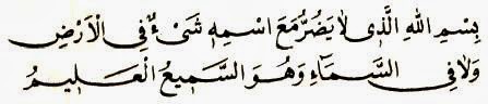 - 100 defa besmele duası[3] (Bismillah ve bismillâhillezî lâ yedurru measmihî şeyun fil ardi velâ fissemâi. Ve huvessemîul alîm[3])(her gün sabah akşam 3 defa-yanlız senede 2 defa 100 kere-gök yere inse sana bir şey olmayacak kimse sana zarar veremeyecek inşAllah sevdiklerine de mutlaka öğret ve okut)